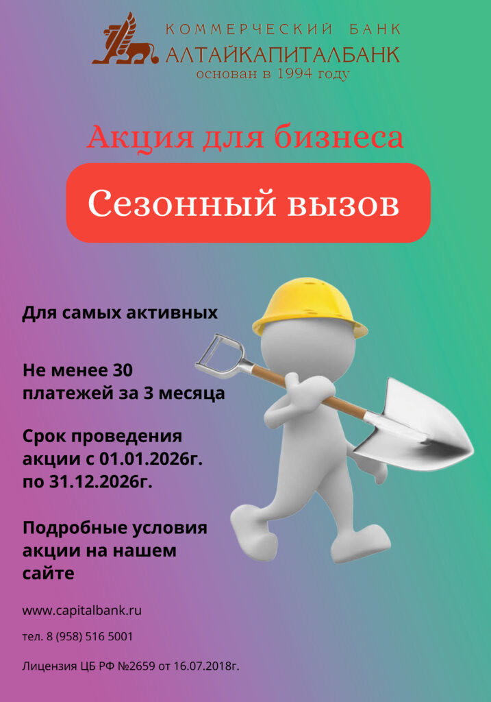 Мы заботимся о своих клиентах и предлагаем выгодные акции на следующие услуги!Акции для бизнесаСезонный вызов Условия акции Полгода за полцены Условия акции Накопительный счет Условия акции Приведи друга Условия акции Cчет 0! Ведение 0! Бонусы в подарок! Подробные условия Акции по этой ссылке. Акция «Контракт+» Акция «БИЗНЕС-ПОМОЩЬ» Акции для населенияАрхив Акций