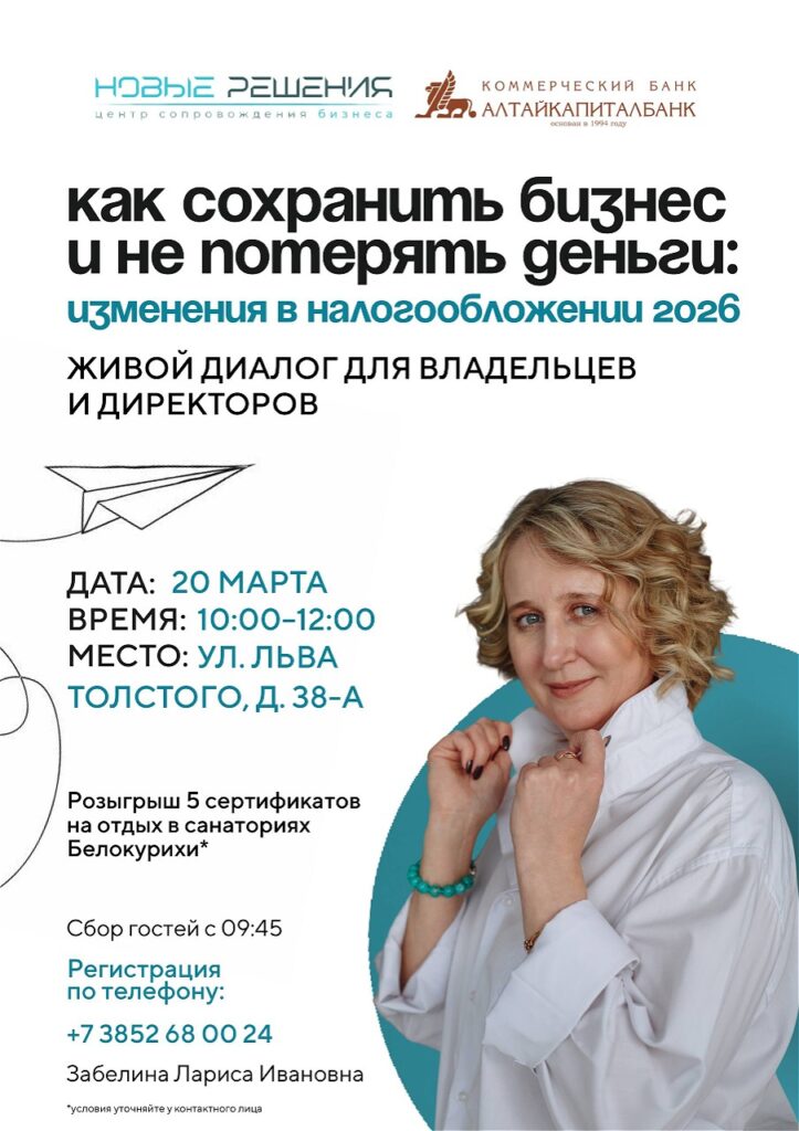Уважаемые клиенты Алтайкапиталбанка. Приглашаем принять участие в закрытом живом диалоге с руководителями компаний, специалистами нашего банка и экспертом по консталтингу в сфере налогооблажения и управленческого учета.